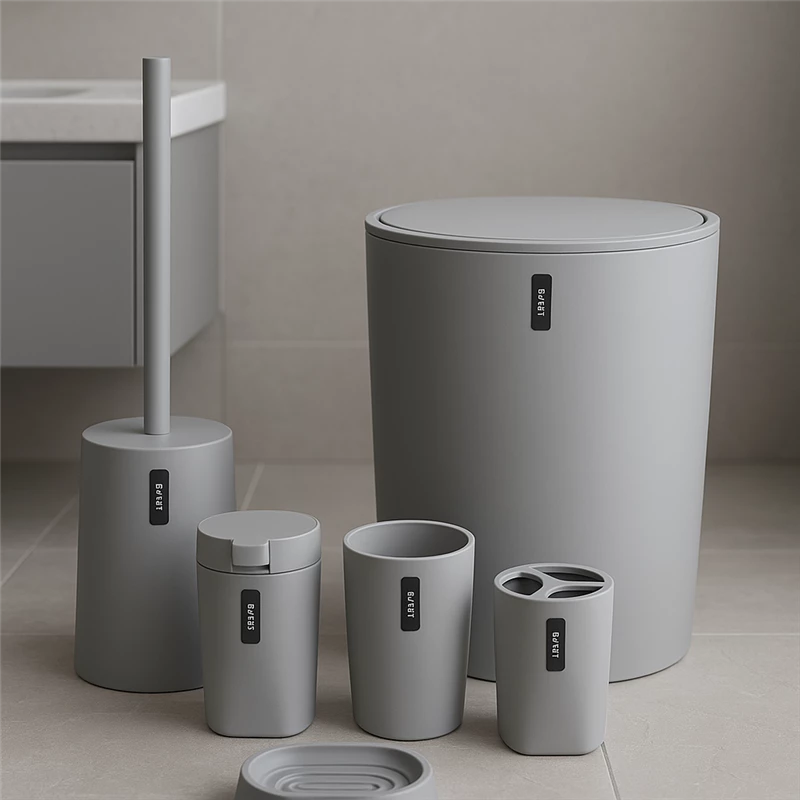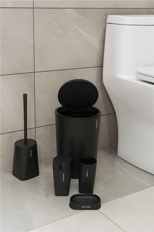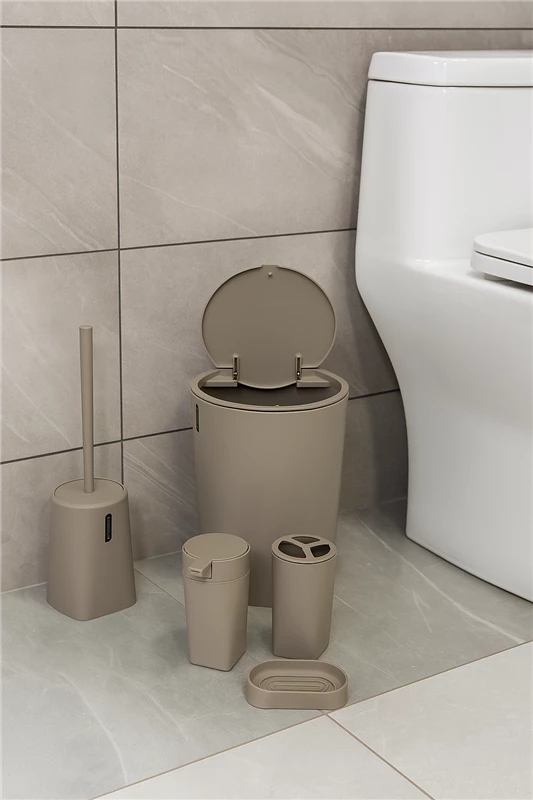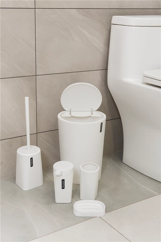 ست سرویس بهداشتی یک عدد سطل زباله+یک عدد فرچه+یک عدد جا مسواکی +یک عدد جا مایع+ یک عدد ظرف صابون+ یک عدد ظرف درب دار